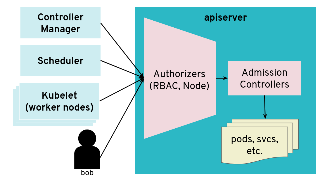 In most configurations, different components connect directly to the Kubernetes API server, often using a kubeconfig with a client certificate. The API server is started with the flag: