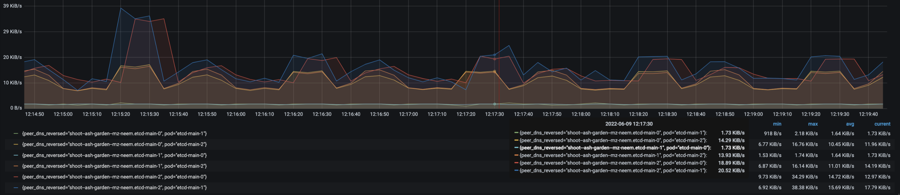 • Leader to another follower etcd-main-0 max egress: <20KiB/s.